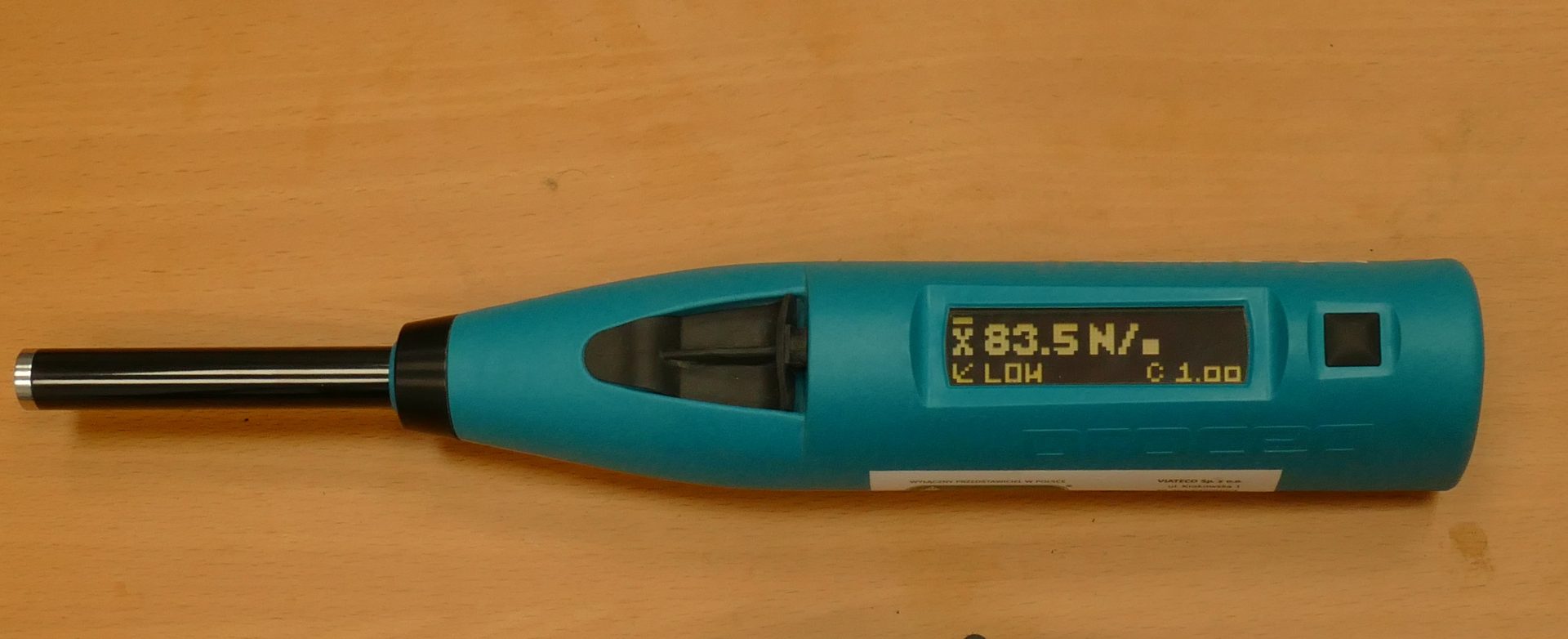 Bezinwazyjny pomiar wytrzymałości betonu zakresie 10 do 100 N/mm2 i ocena jego jakości, z automatyczną detekcją i korekcją kierunku uderzenia oraz bezpośrednim odczytem wytrzymałości.